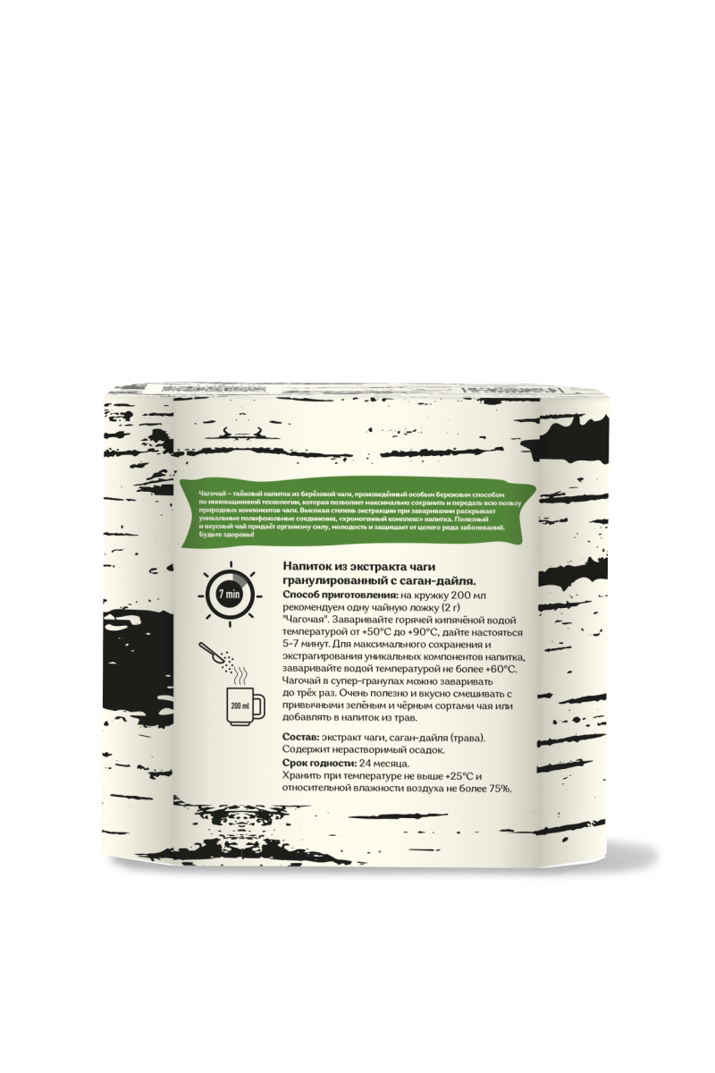Чагочай гранулированный - уникальный горячий напиток из Сибири! Бережная инновационная технология позволила нам создать удобный формат Чагочая и сохранить все полезные свойства чаги. Чай из чаги бодрит, улучшает общее самочувствие, повышает работоспособность и укрепляет иммунитет. В народной медицине берёзовый гриб известен целебной силой в лечении и профилактике болезней ЖКТ.